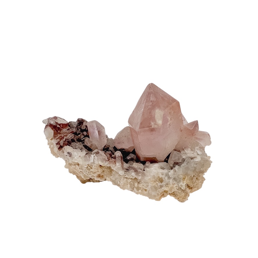 This crystal has soft and warm tones created by the iron ore inclusions within the quartz with the main crystal points surrounded by baby points.